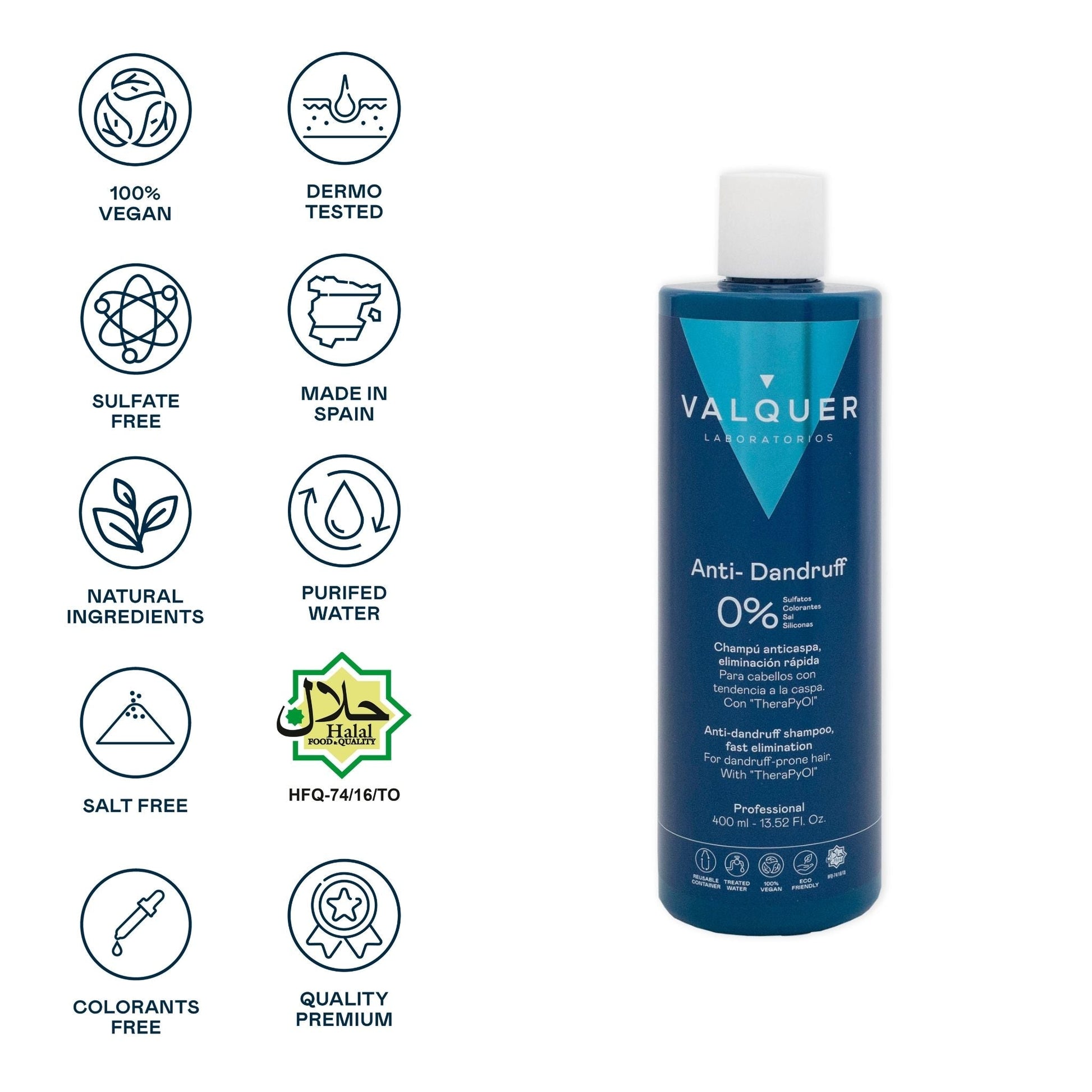 Este champú pertenece a la línea 0% de Valquer, una gama que da prioridad máxima a los ingredientes naturales en sus formulaciones: champús libres de sulfatos, colorantes, sal o siliconas. Desarrollada para ofrecer una solución efectiva, suave y respetuosa para el cuidado del cuero cabelludo, garantizando un tratamiento completo y equilibrado para combatir la caspa sin agredir la fibra capilar.
