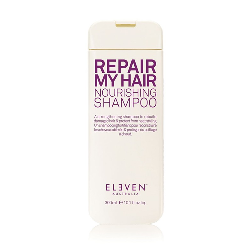 eleven repair my hair shampoo es un producto especial para proteger el cabello de los efectos del calor y hidratar y reparar los daños causados por químicos o el estrés diario. reconstruye la fibra capilar , es libre en gluten protege el color y no es testado en animales .