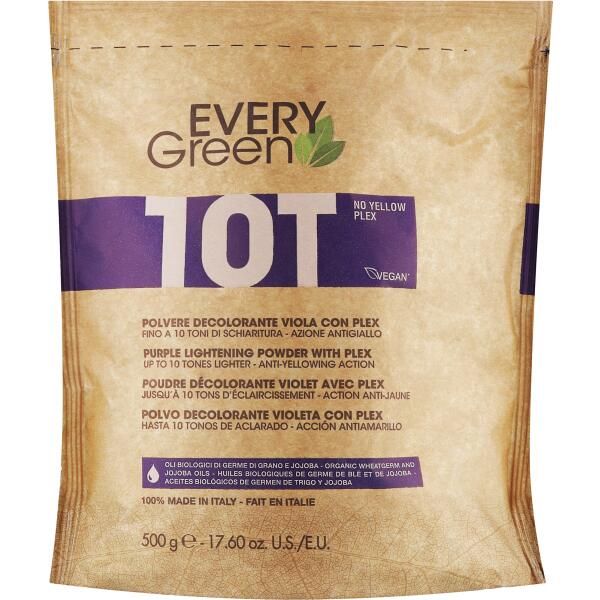 Every Green Decoloración No Yellow Plex es un polvo decolorante profesional de 500gr diseñado para obtener resultados de máxima claridad sin tonos amarillos. Su fórmula avanzada con plex protector mantiene la integridad del cabello durante el proceso de decoloración, proporcionando un rubio puro y luminoso. Ideal para coloristas que buscan precisión y control en cada aplicación. Perfecto para trabajos de decoloración intensiva con resultados predecibles y cabello protegido.