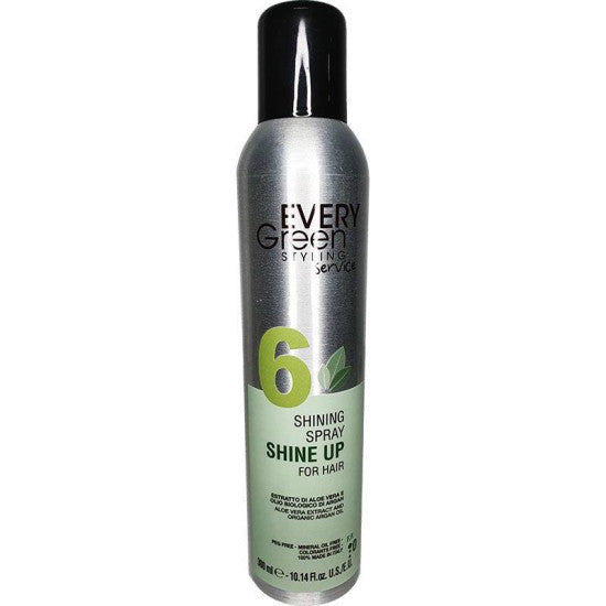 Every Green Shine Up es un spray de brillo profesional formulado con aceite de argán y aceite de oliva, ingredientes naturales reconocidos por sus propiedades nutritivas y protectoras. Su fijación ligera proporciona un acabado luminoso sin apelmazar el cabello, permitiendo que luzca radiante y saludable. Ideal para realzar el brillo natural de cualquier tipo de cabello mientras lo nutre en profundidad. Presentación de 300ml.