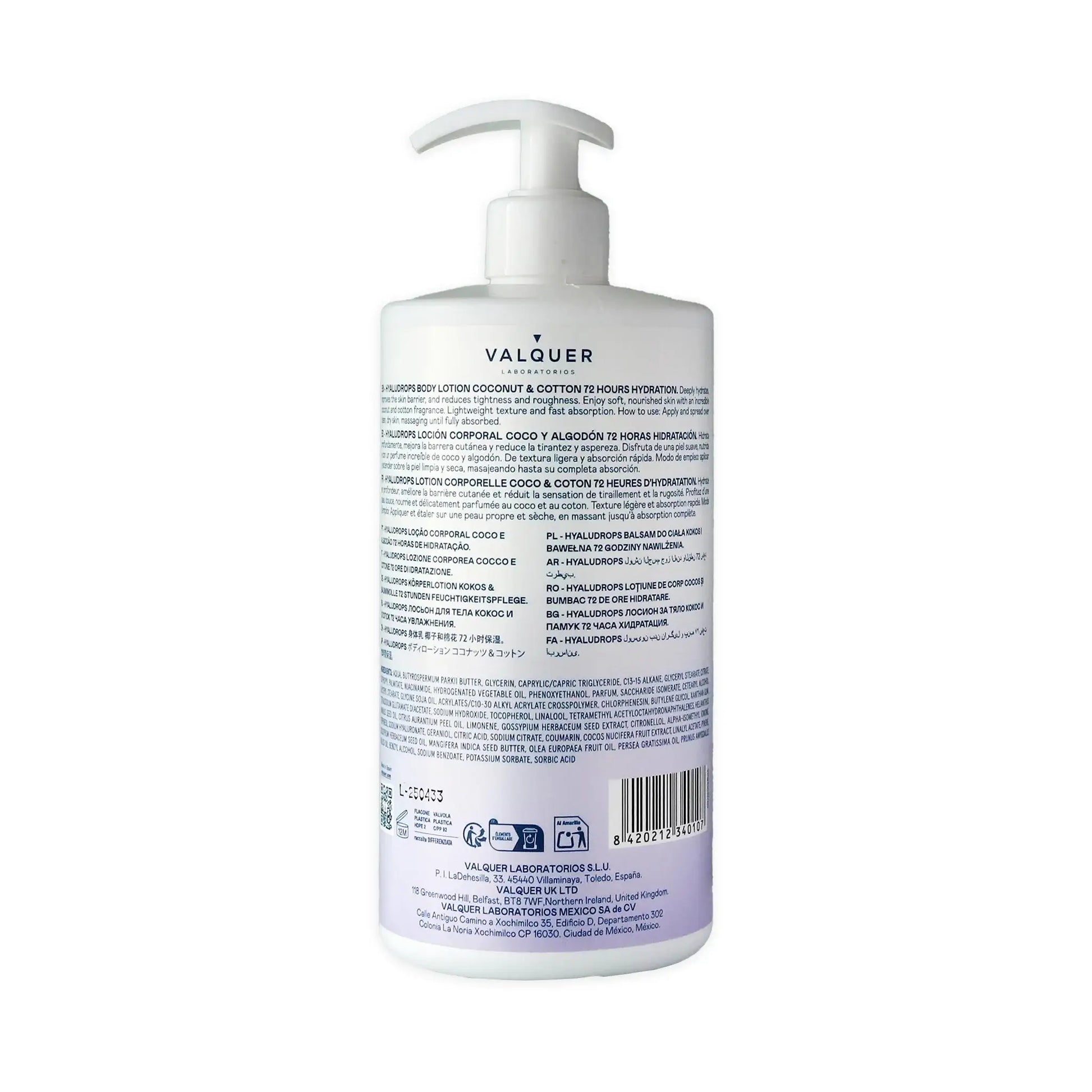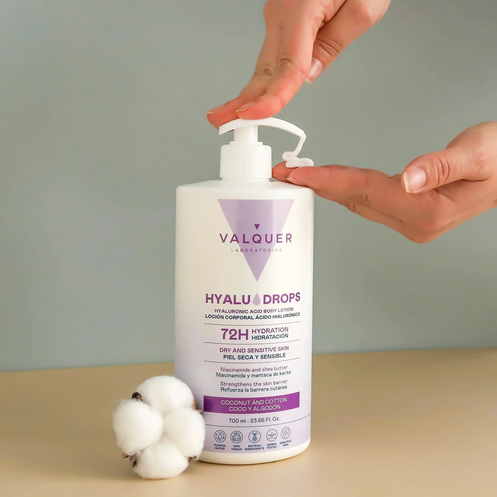Hyaludrops Loción Corporal Coco y Algodón – Hidratación 72H - 700 ml