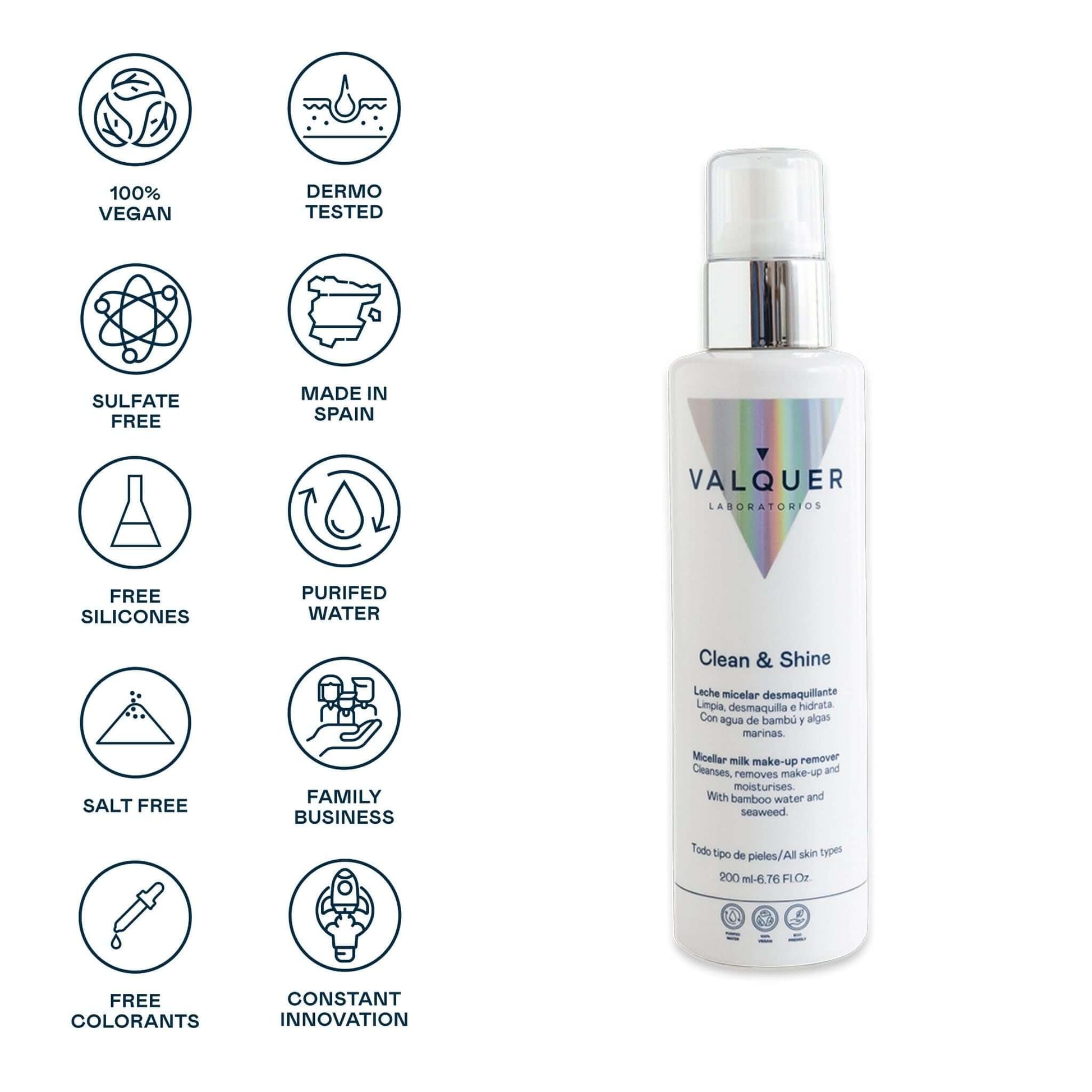 Leche micelar que limpia y desmaquilla con suavidad el rostro de forma rápida y eficaz. Enriquecida con agua de bambú y extracto de algas deja la piel hidratada, limpia y fresca.