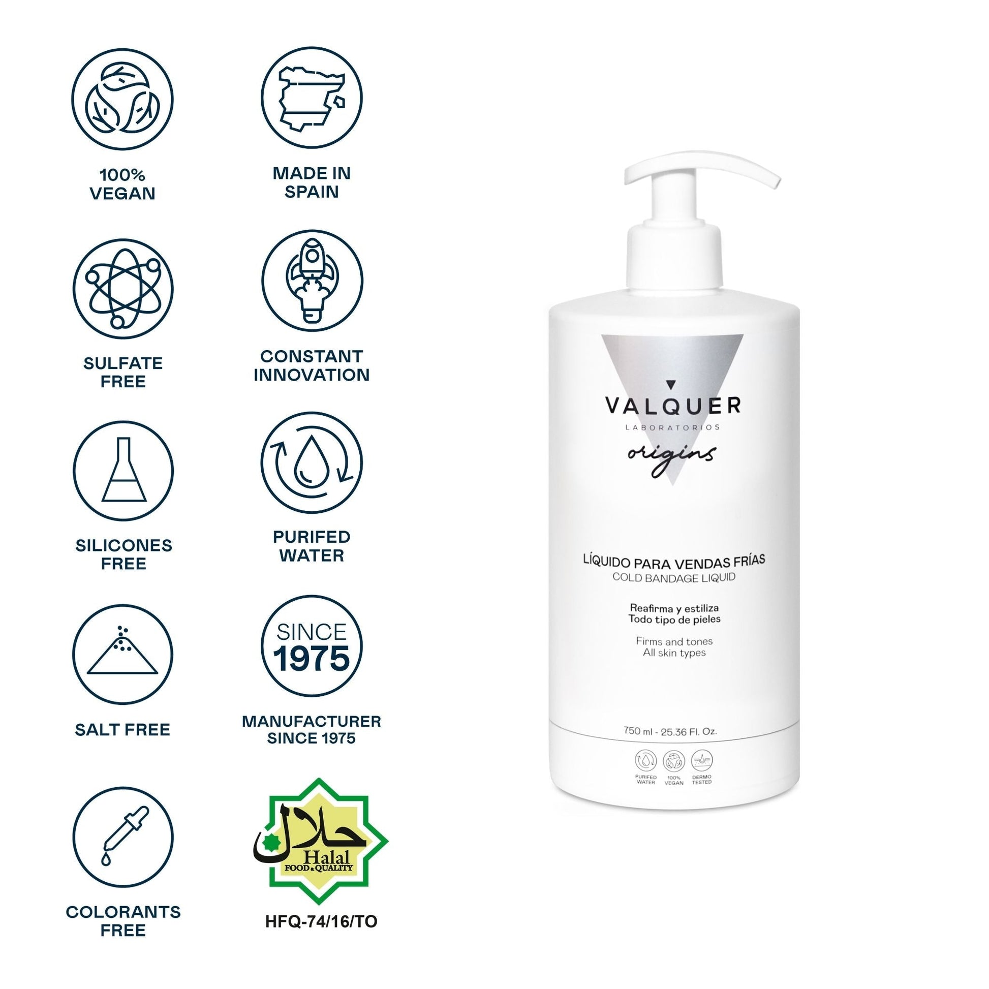 Líquido para vendas frias reafirmante para todo tipo de pieles.