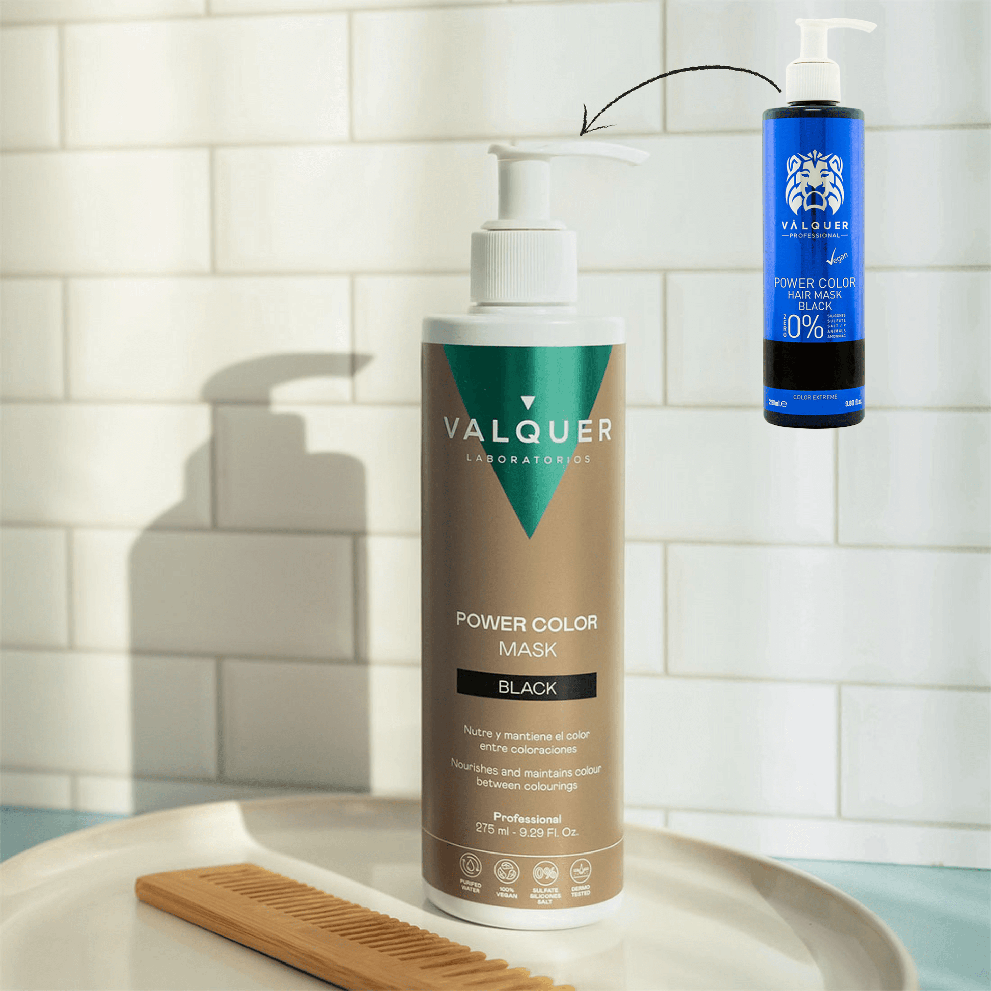 Mascarilla color negro potenciadora del color en cabellos teñidos y para la coloración temporal en cabello natural.