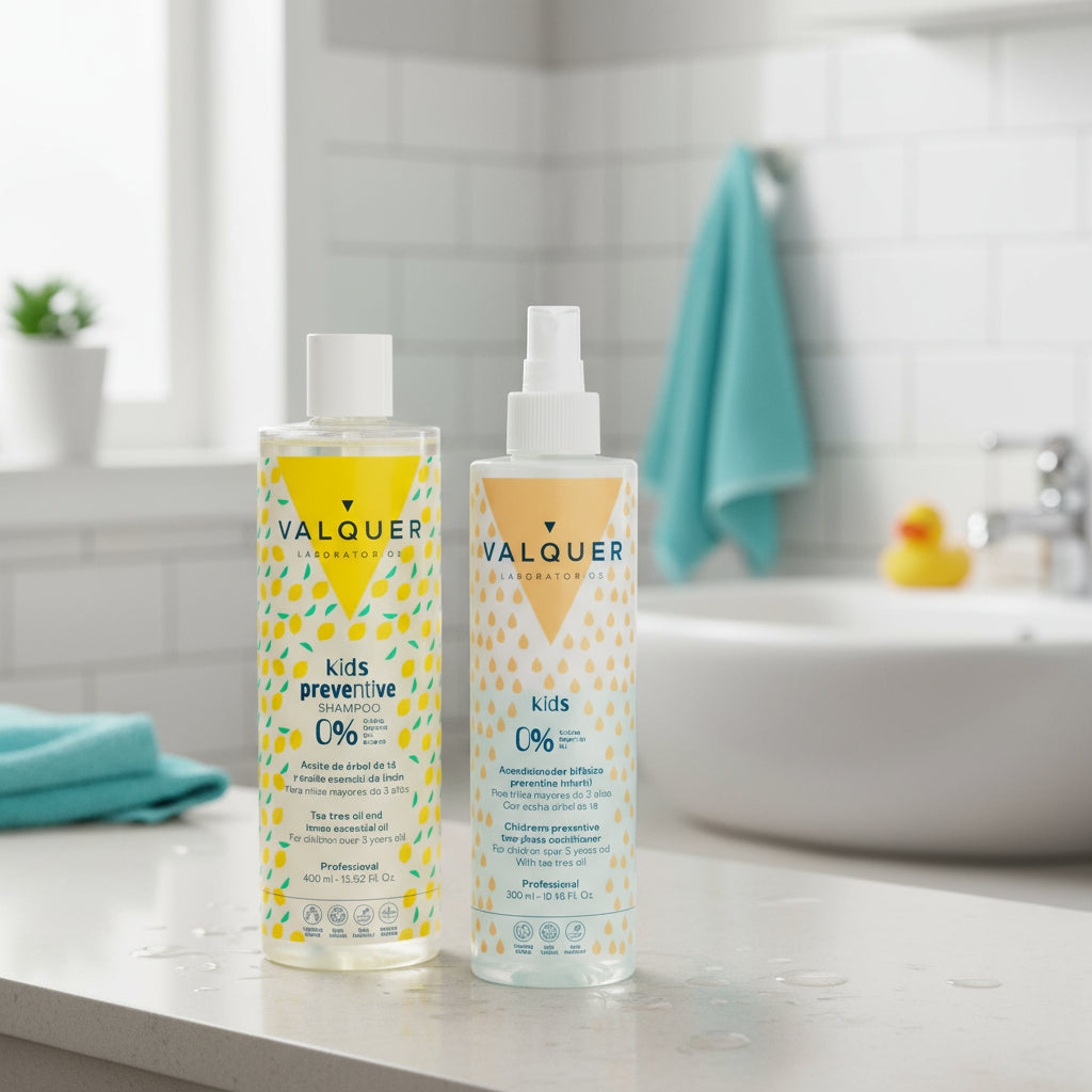 Pack con la gama de productos exclusivos para el cuidado preventivo del cabello de niños y niñas mayores de tres años: