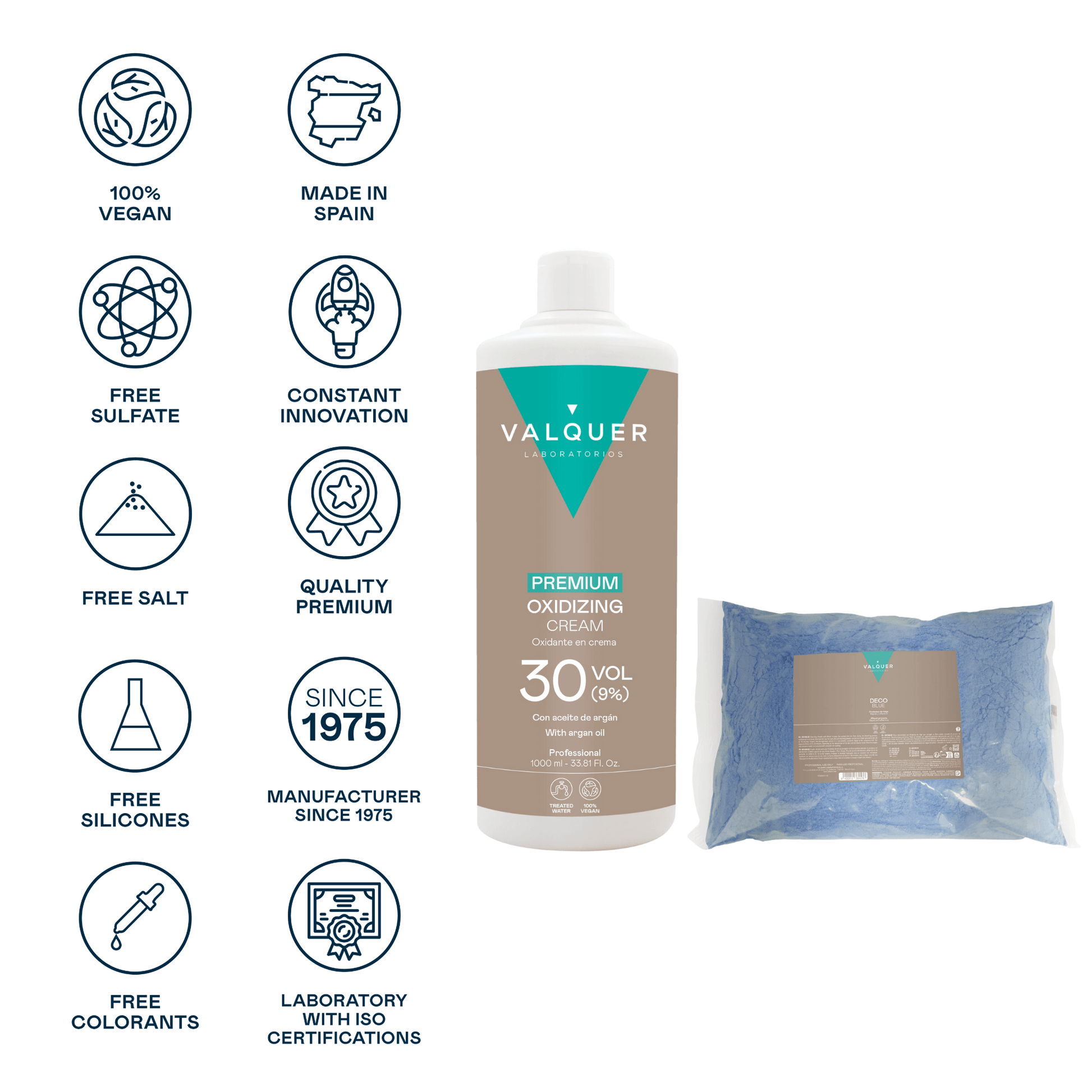 Pack Deco – Oxidante Premium Ultra-Cremoso 30 Vol (9%) 1000 ml + Decoblue Polvos Decolorantes