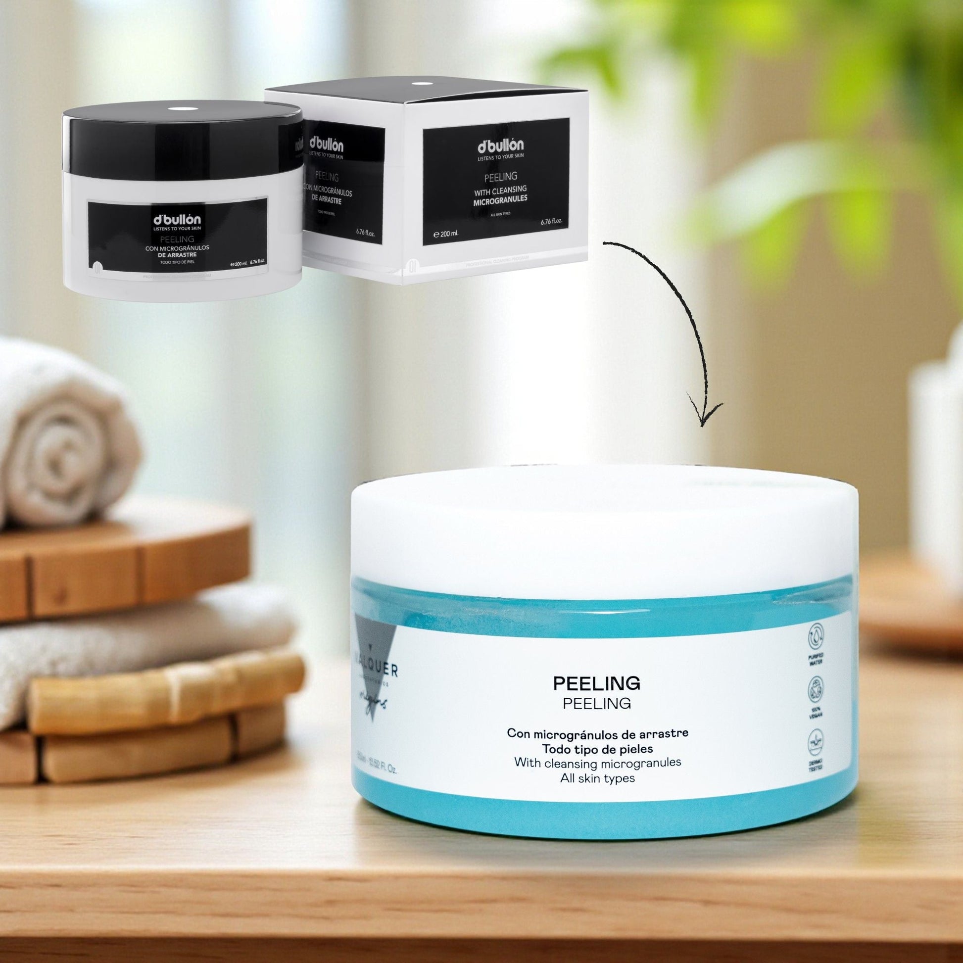 Renueva tu piel con el Peeling Facial con microgránulos de arrastre, un gel exfoliante suave pero eficaz que elimina células muertas e impurezas, favoreciendo la regeneración natural de la epidermis.