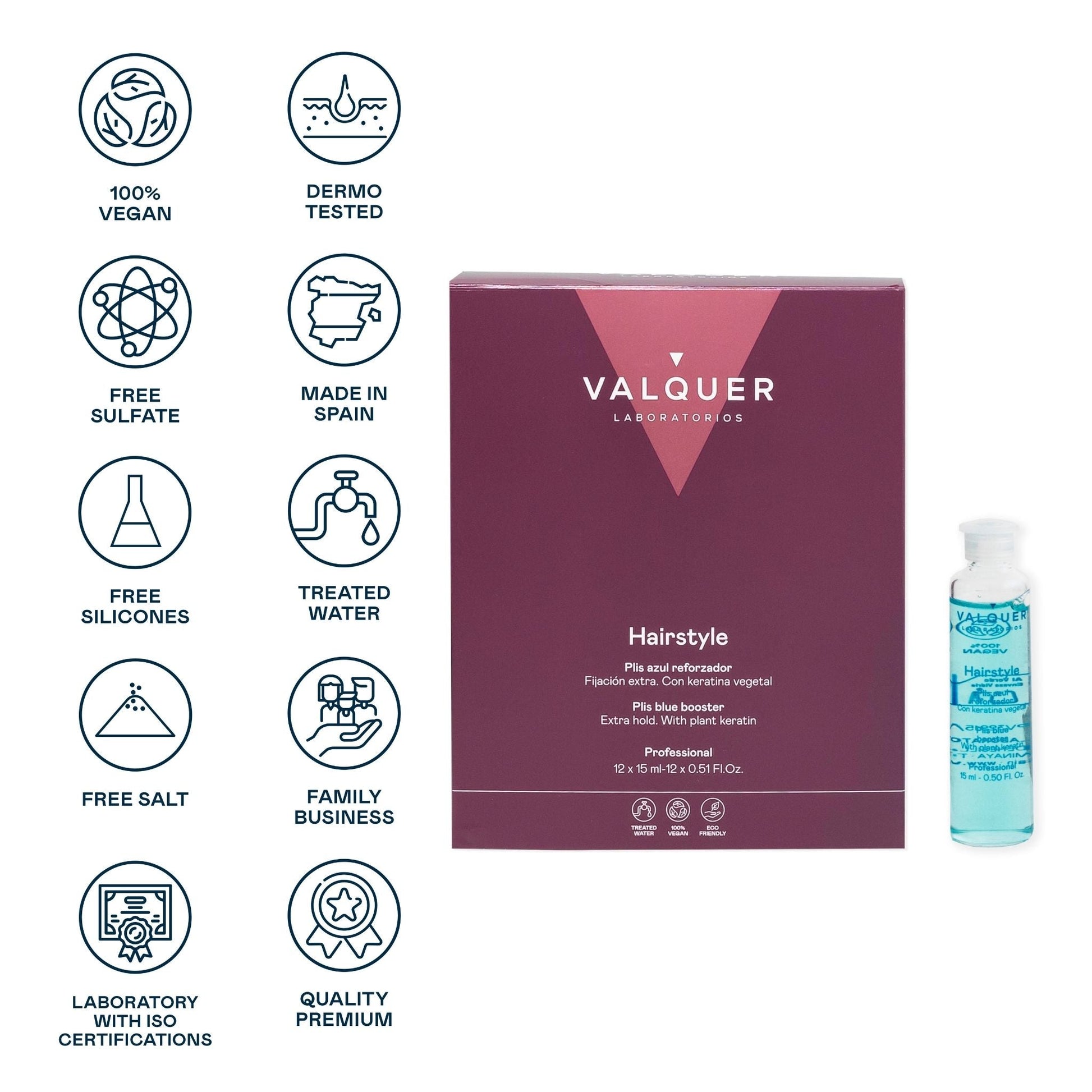 Las ampollas capilares Plis Azul Reforzador de Valquer están diseñadas para proporcionar volumen, protección y una fijación natural y duradera al peinado. Este producto profesional es ideal para estilistas que buscan un resultado impecable con cada uso, facilitando la creación de peinados y prolongando su duración.
